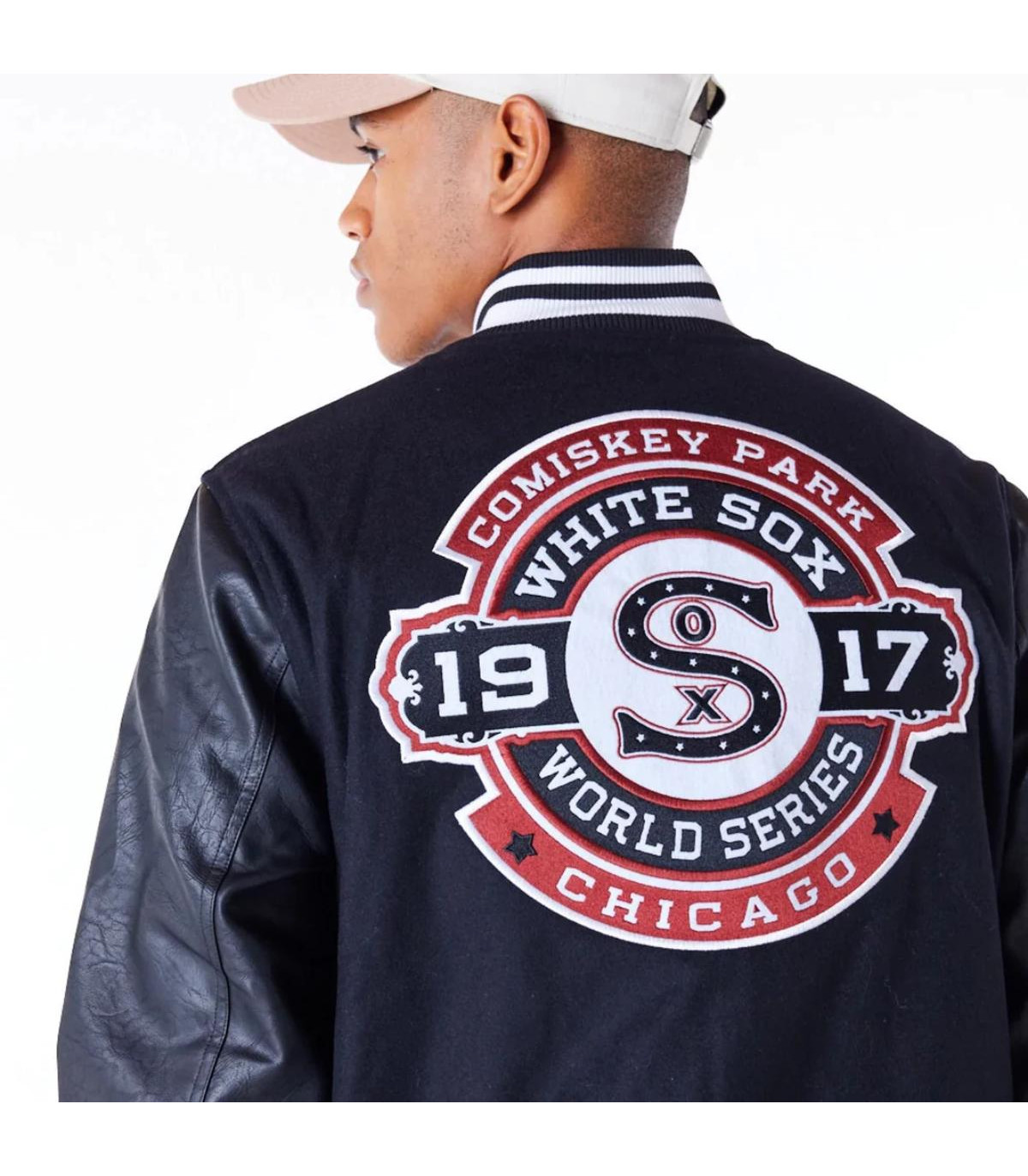 Esta Chaquetas Varsity New Era de Chicago White Sox de la colección MLB World Patches presenta un diseño con una imagen conmemorativa y el logotipo de los White Sox en la parte frontal, una imagen conmemorativa en grande al reverso y el flag de New Era bordado en la manga izquierda. Cómprala ya.