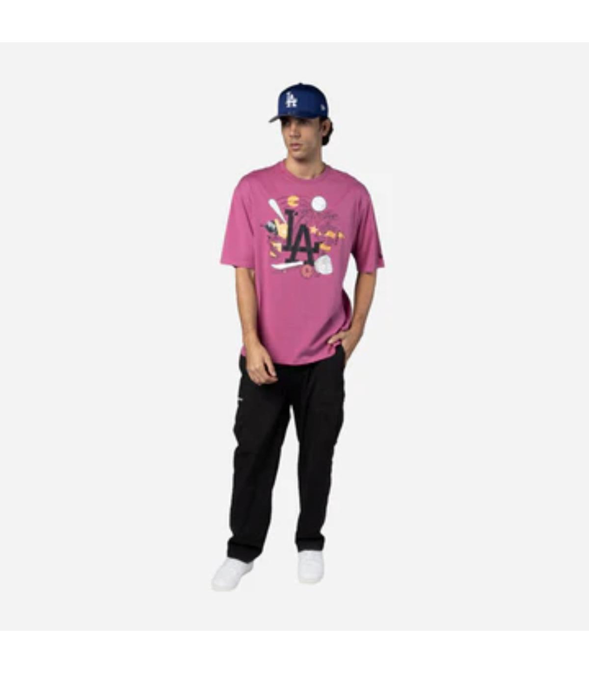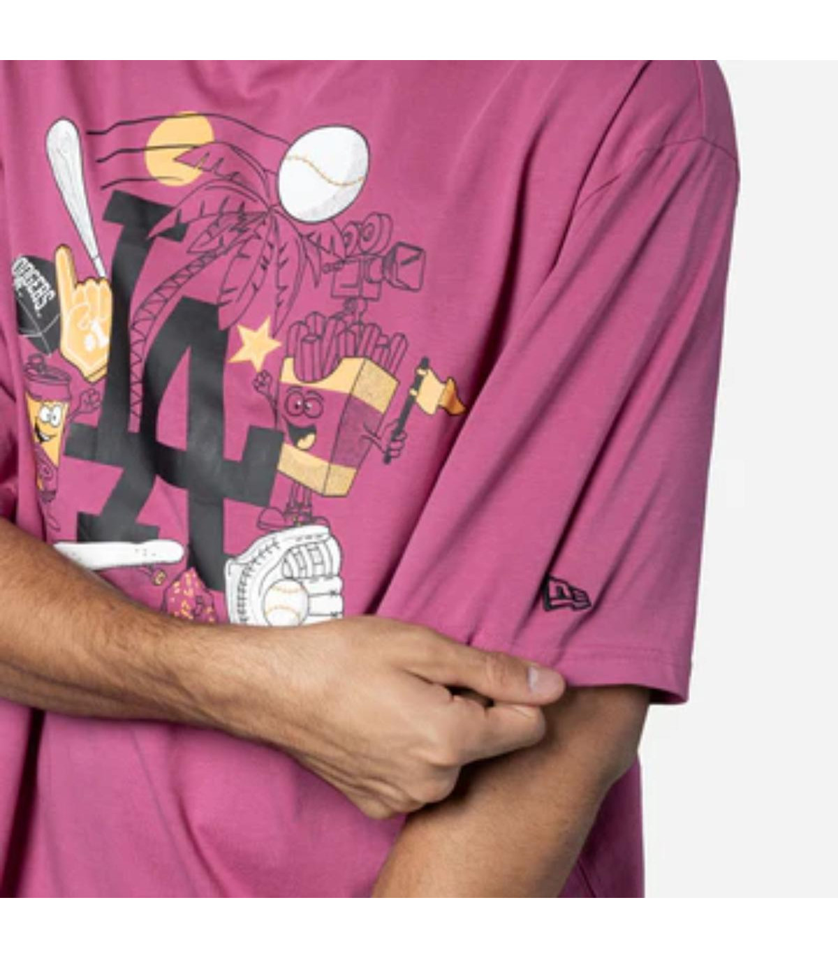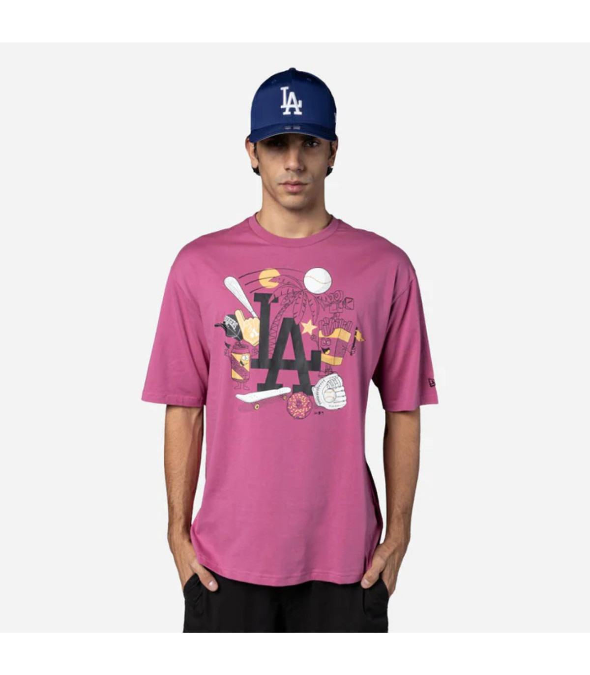 Esta Poleta Manga Corta New Era de Los Angeles Dodgers de la colección MLB Food Graphic presenta un diseño con el logotipo de los Dodgers junto con ilustraciones de comida y beisbol estampados en la parte frontal y el flag de New Era bordado en la manga izquierda. Luce con estilo y cómprala ya.